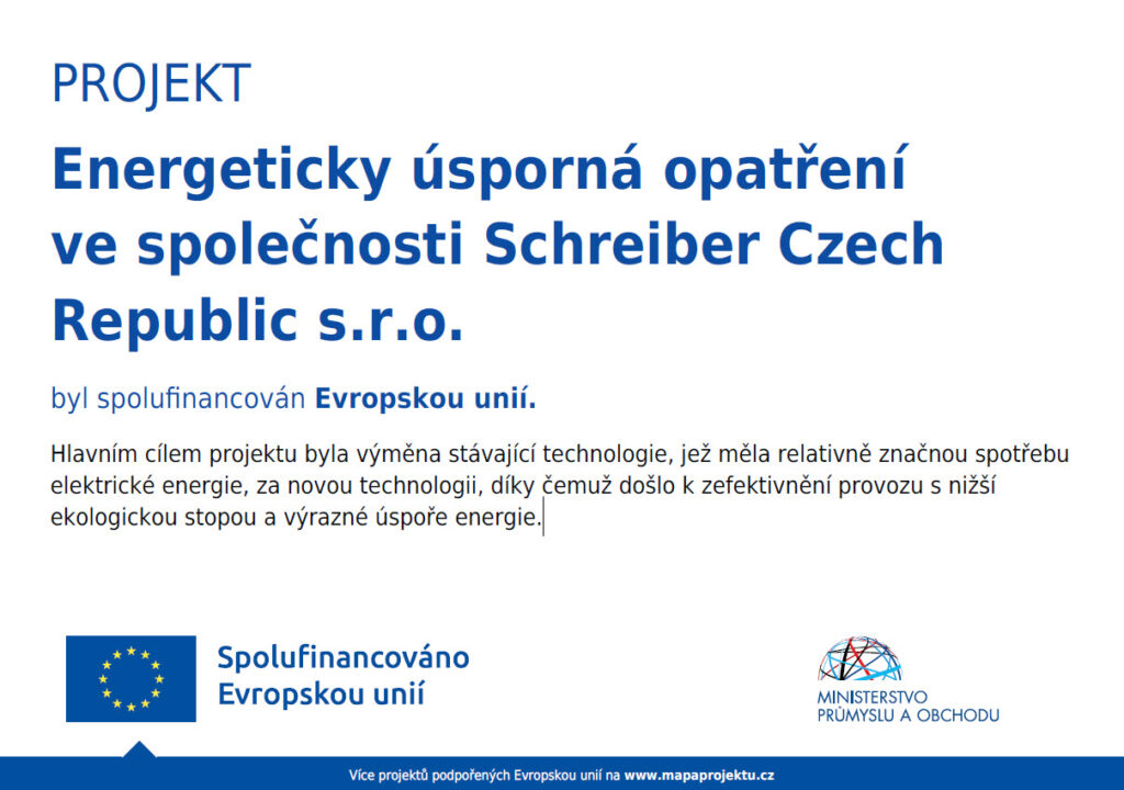 Energy saving measures in the company Schreiber Czech Republic s.r.o. were co-financed by the European Union.