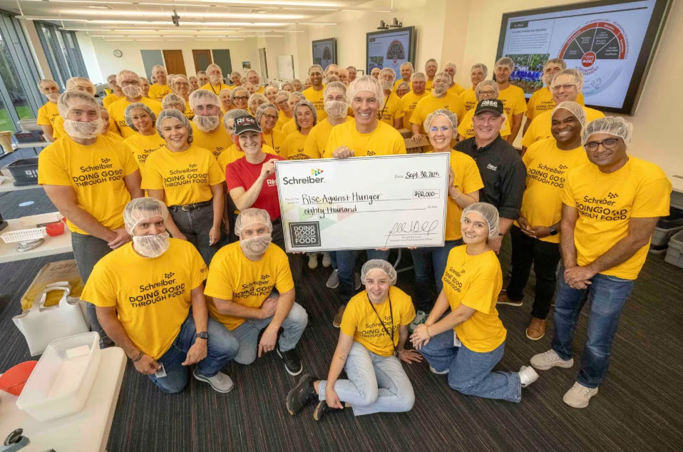 Schreiber will work alongside Feeding America and Rise Against Hunger to allocate the funds, with an emphasis on food banks and hunger-relief programs in the areas where Schreiber has offices and plants.